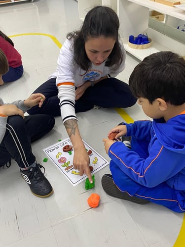 Na abordagem Montessori, o aprendizado do inglês é integrado de maneira natural e divertida. Usamos jogos, histórias, músicas e atividades práticas para ensinar o inglês de uma forma envolvente. Dessa forma, as crianças aprendem a língua de maneira natural, como parte de seu cotidiano, o que torna o processo mais eficaz e agradável.